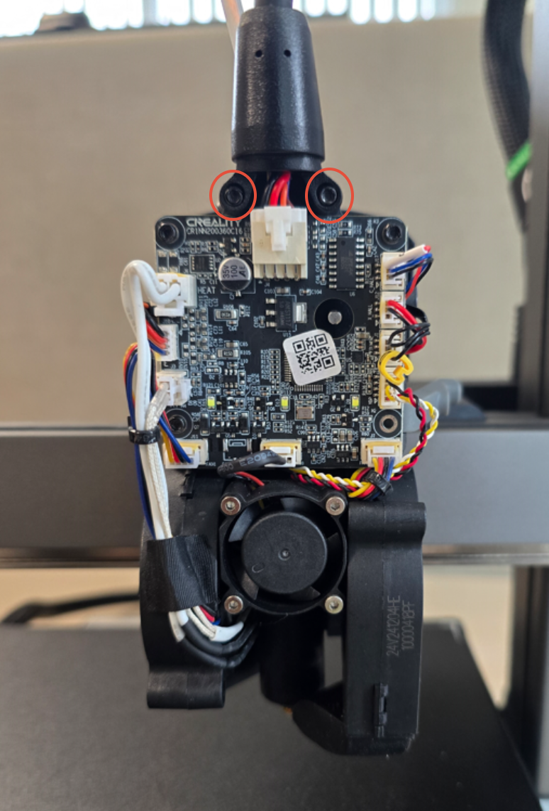 - Step 4. Unscrew 2 Screws holding down Extruder Cable