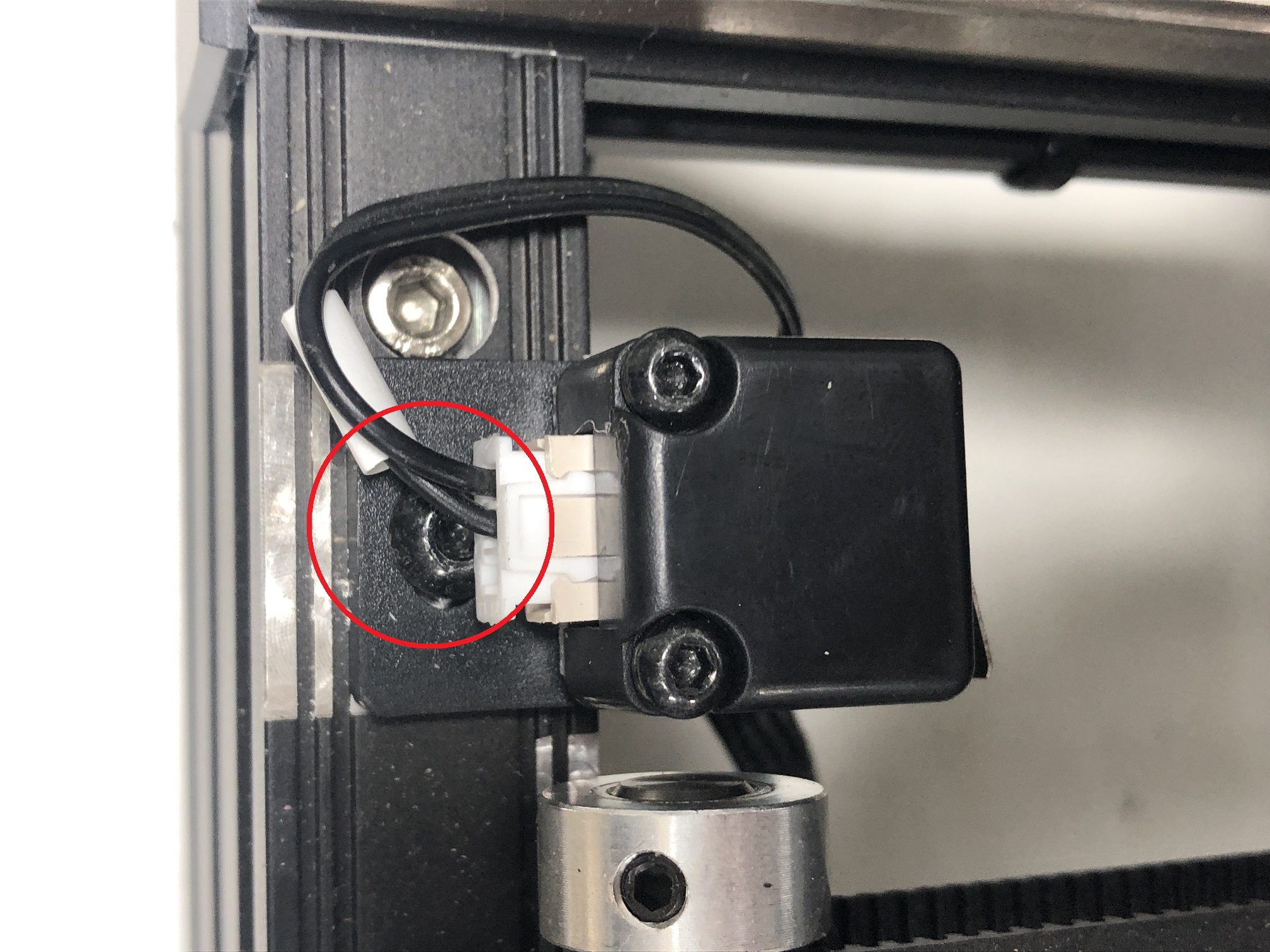 Unscrew the screw holding down the endstop bracket to the base frame of the printer.