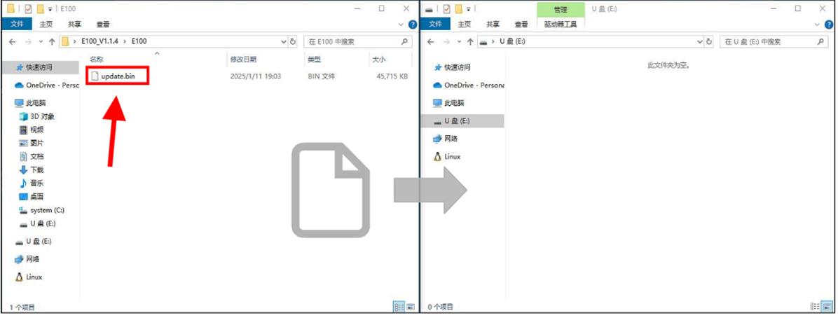 1. Drag the downloaded firmware to the USB drive. It should be a .bin file only.